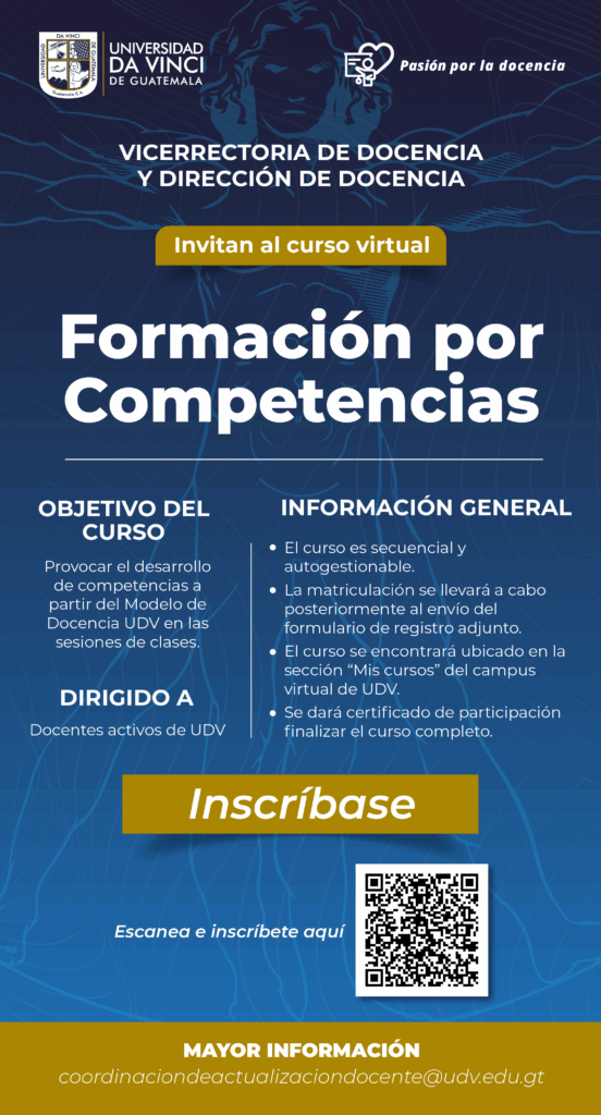 La Vicerrectoría de Docencia y la Dirección de Docencia invitan a la comunidad de docentes davincianos a participar en el curso modular virtual “Formación por Competencias”. El curso está encaminado a provocar que los docentes procuren una formación integral en los estudiantes, necesaria para su incorporación exitosa a la vida laboral, cultural, política y económica. […]