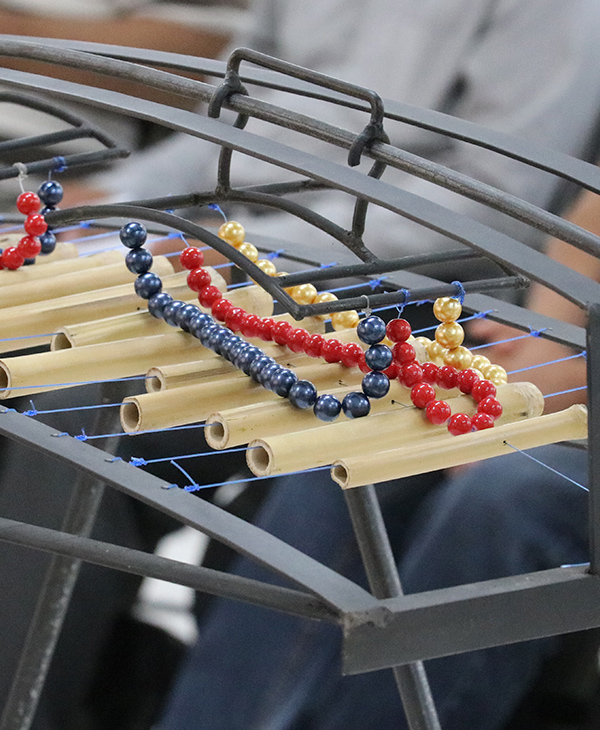Las ideas no valen nada si no toman cuerpo, es como dejarlas en el limbo. La manera o el modo de graficarlas y de darles vida, debe ser muy bien adecuado a la idea sonora” explicaba el Maestro Orellana a los estudiantes. Durante su visita, el compositor trajo consigo varios de sus instrumentos, entre ellos el burbuxa, cuyo nombre significa agua que brota.