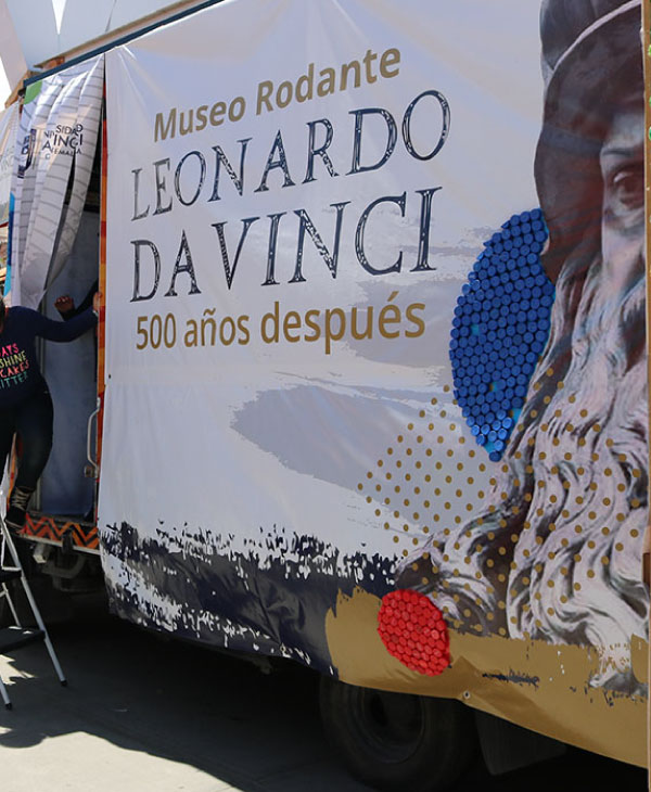 Durante el desfile, el Museo Rodante estuvo a cargo de alumnos, docentes, personal administrativo y académico de Campus Huehuetenango. El objetivo es dar a conocer el legado de Leonardo Da Vinci en el arte, anatomía, matemática y astronomía. Por medio de videos que se proyectan adentro del museo los visitantes pueden observar como las investigaciones y descubrimientos de Da Vinci fueron de gran alcance e intentaron mostrar una unidad subyacente del universo, que se encuentran impresas en el libro de Obras de Leonardo Da Vinci.